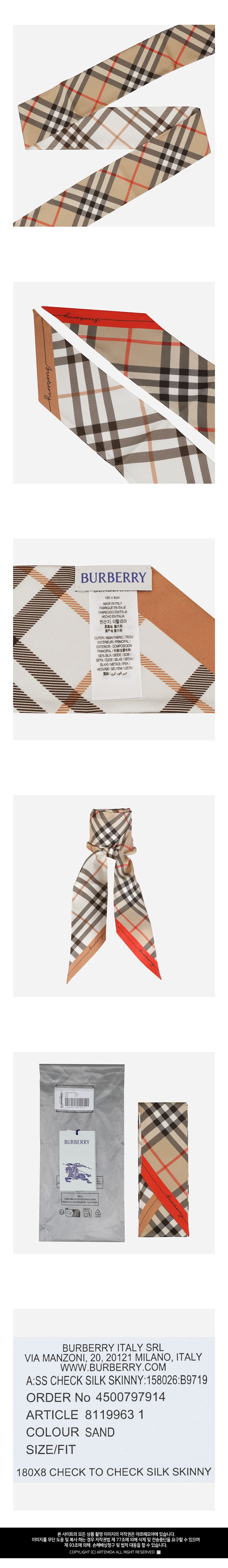 Product Name: Burberry 6S Check Silk Skinny Scarf 8119963 B9719 150678188