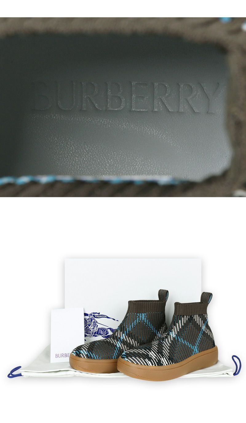 Product Name: Burberry Kids Vintage Check Knit Mid Boots (Khaki) 8099961 127024047