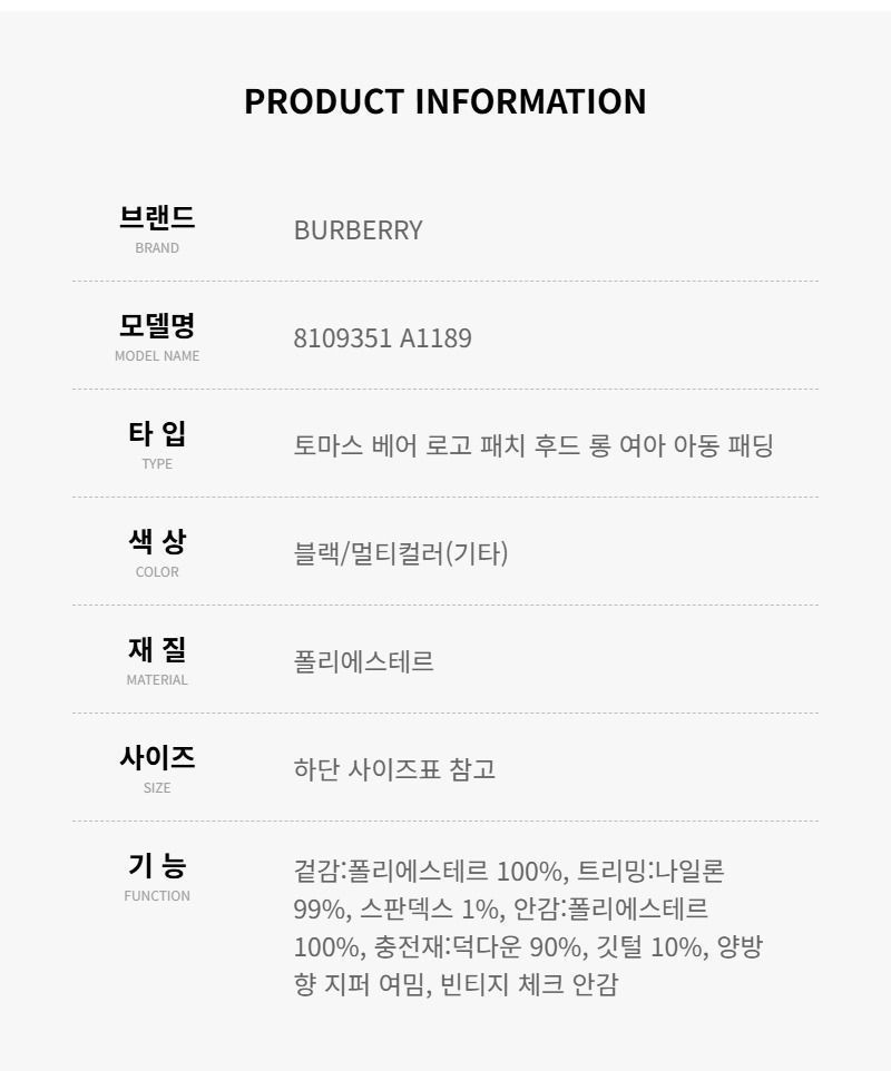 Product Name: Burberry Padded Thomas Bear Logo Patch Hoodie Long Kids Padding A1189 8109351 150543607