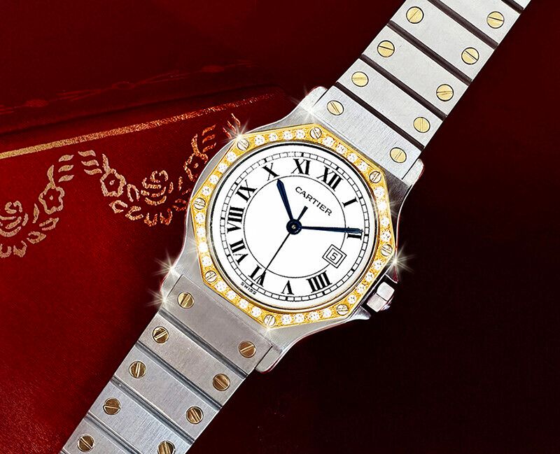 - Model Number: Cartier Santos Octagon Automatic Combination Band Diamond Watch