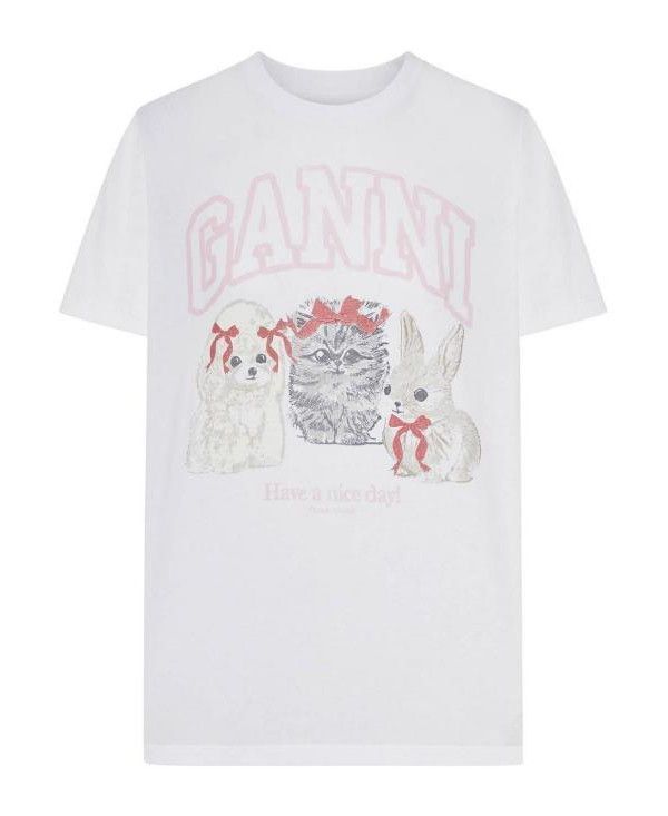 Product Name: Ganni White Animals Print T-Shirt A1050029 151 152204409
