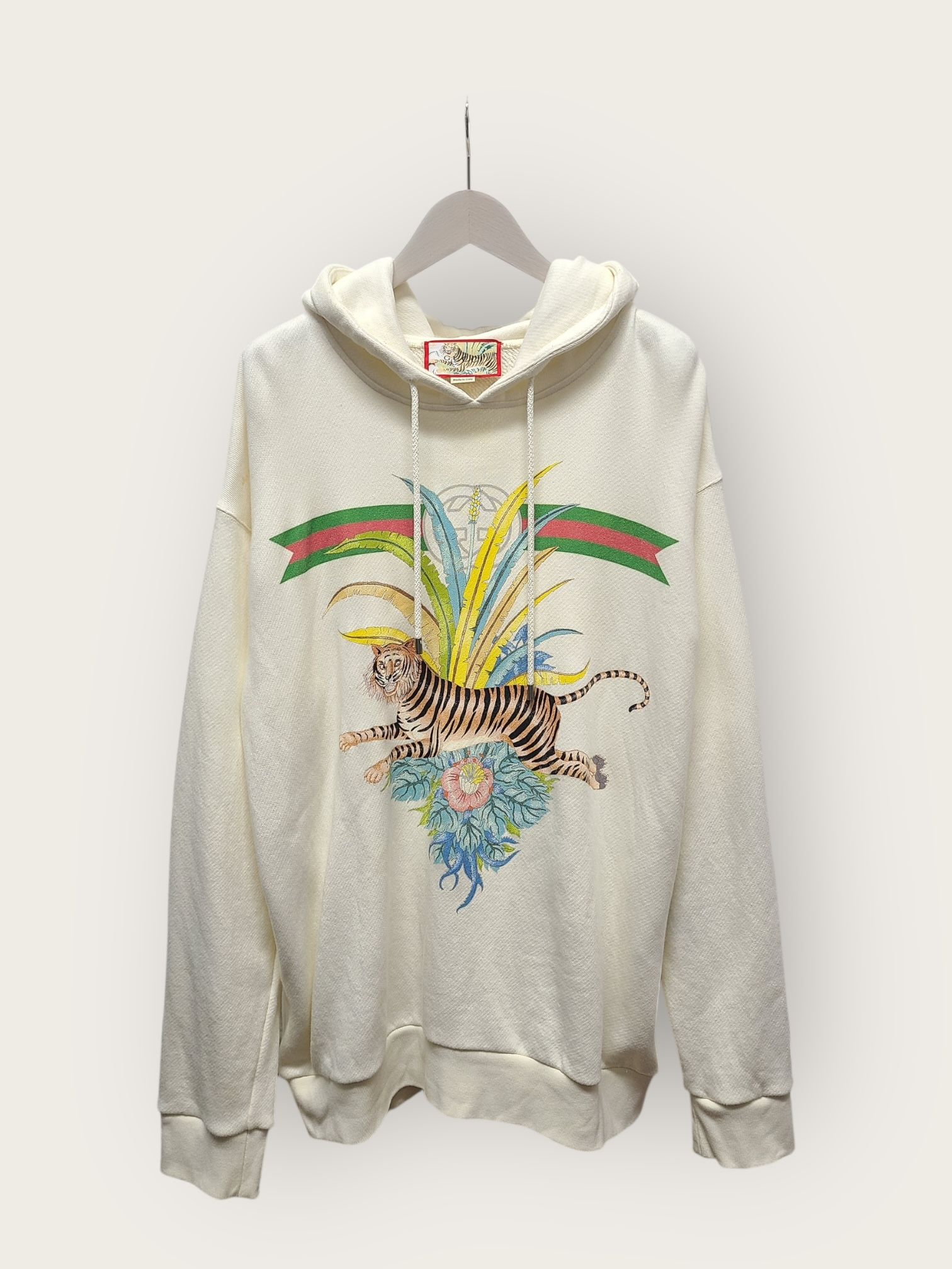 Product Name: Gucci Ivory GG Striped Web Tiger Print Hoodie 150639840