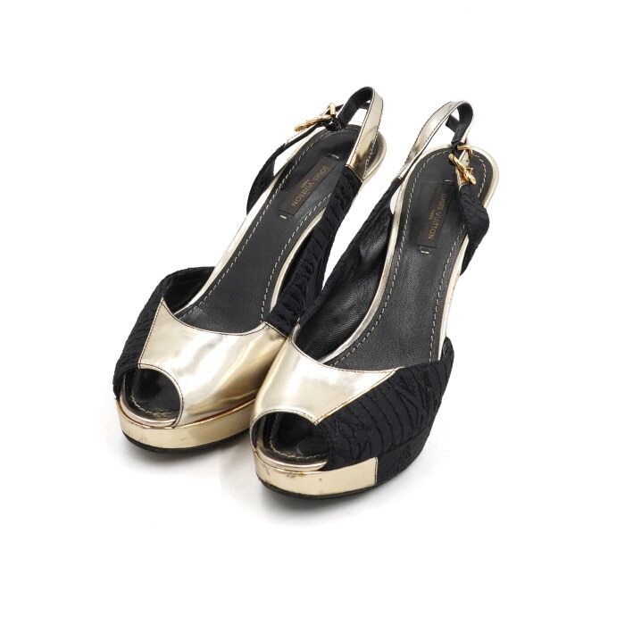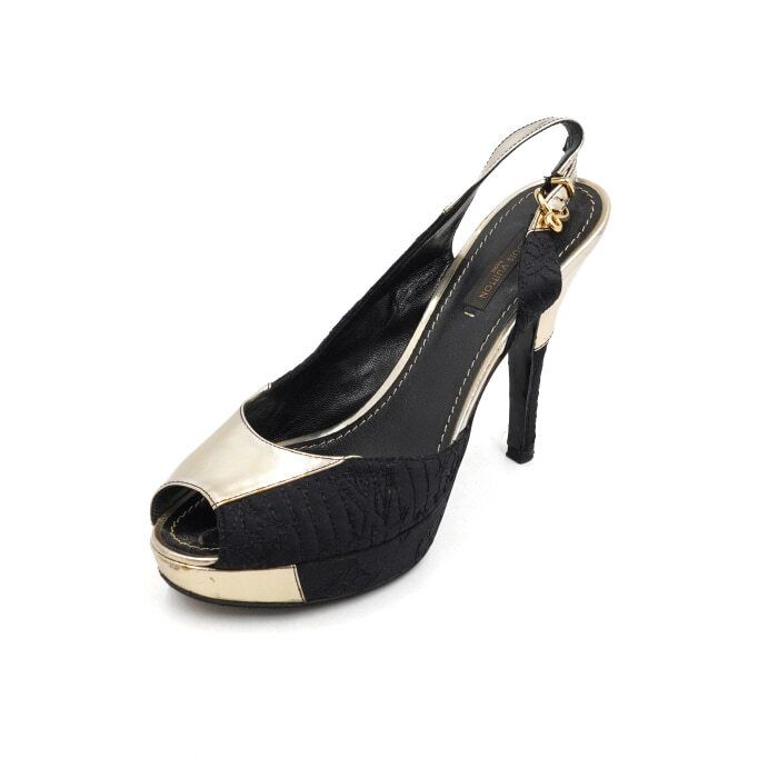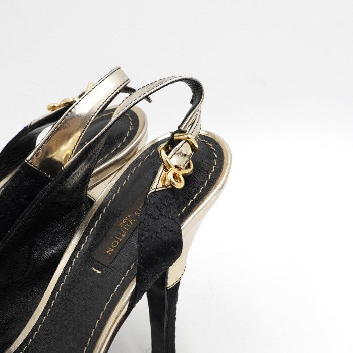 Product Name: Louis Vuitton Metallic Gold Open-Toe Slingback Women's Shoes aa52121 152897853