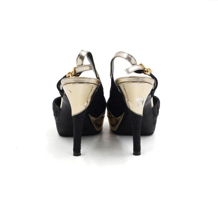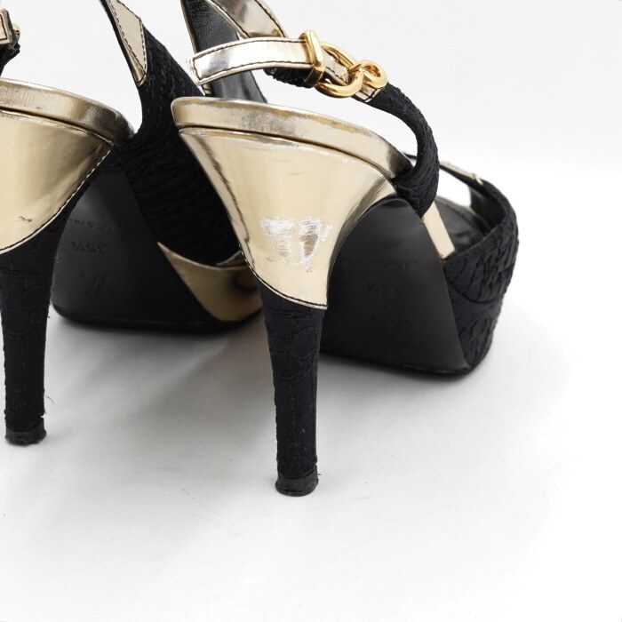 - Metallic gold open-toe slingback women's shoes