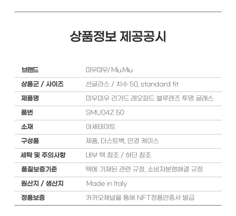Product Name: Miu Miu Leopard Blue Lens Transparent Glasses Sunglasses SMU04Z 50 119570232