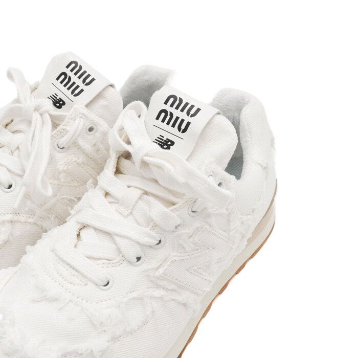 - Includes: Miu Miu X New Balance 574 5E765D White Denim Sneakers