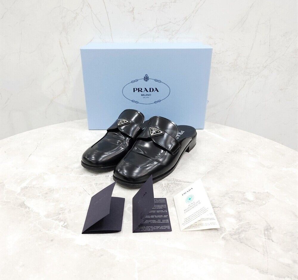 Product Name: Prada Triangle Logo Brushed Leather Mule 1D918M 145927487