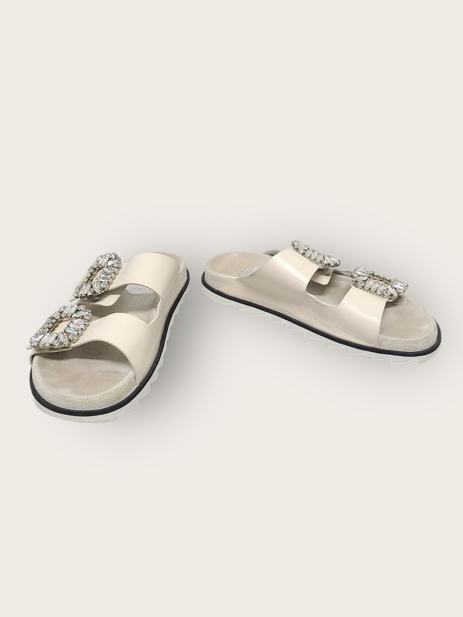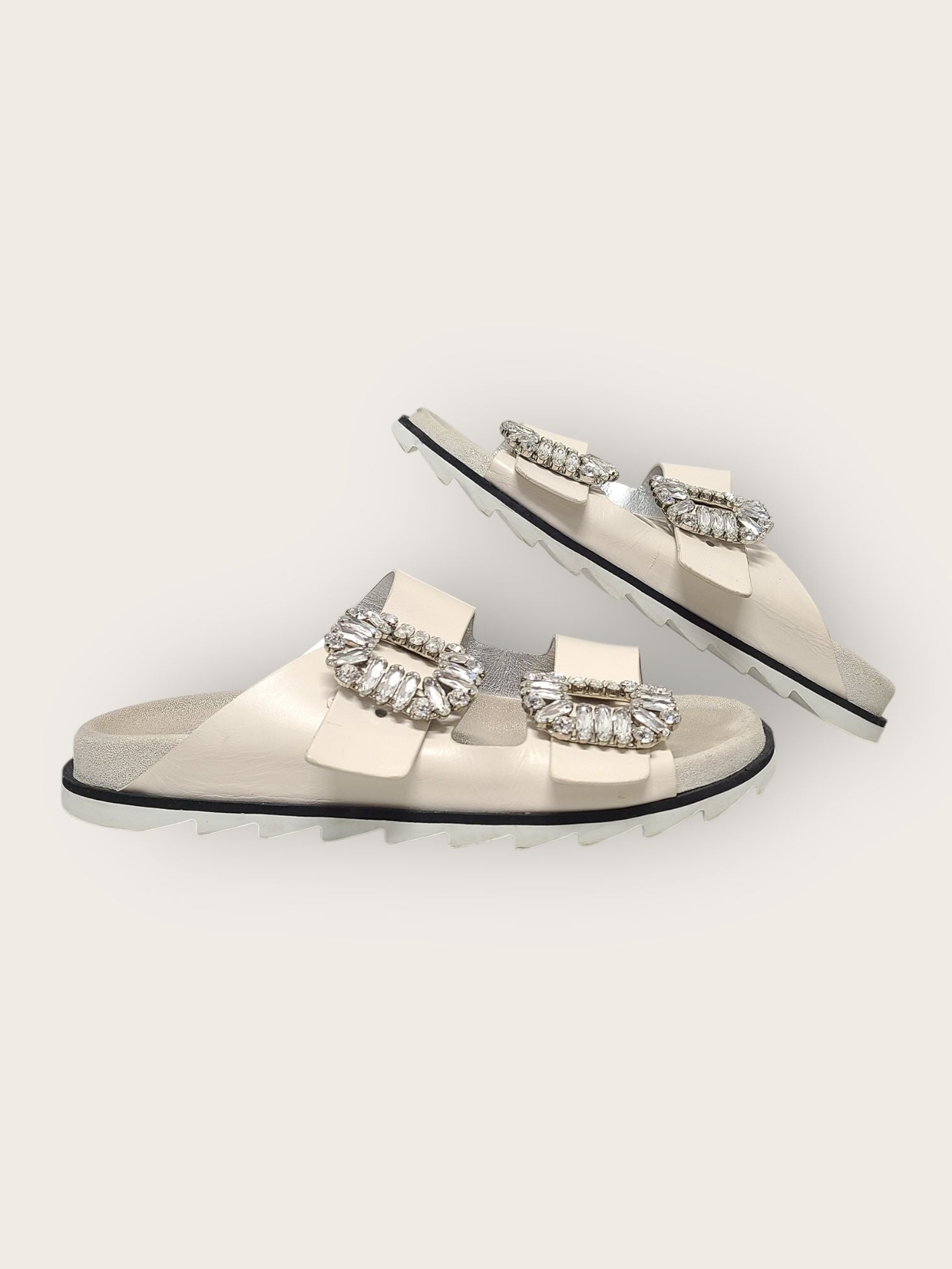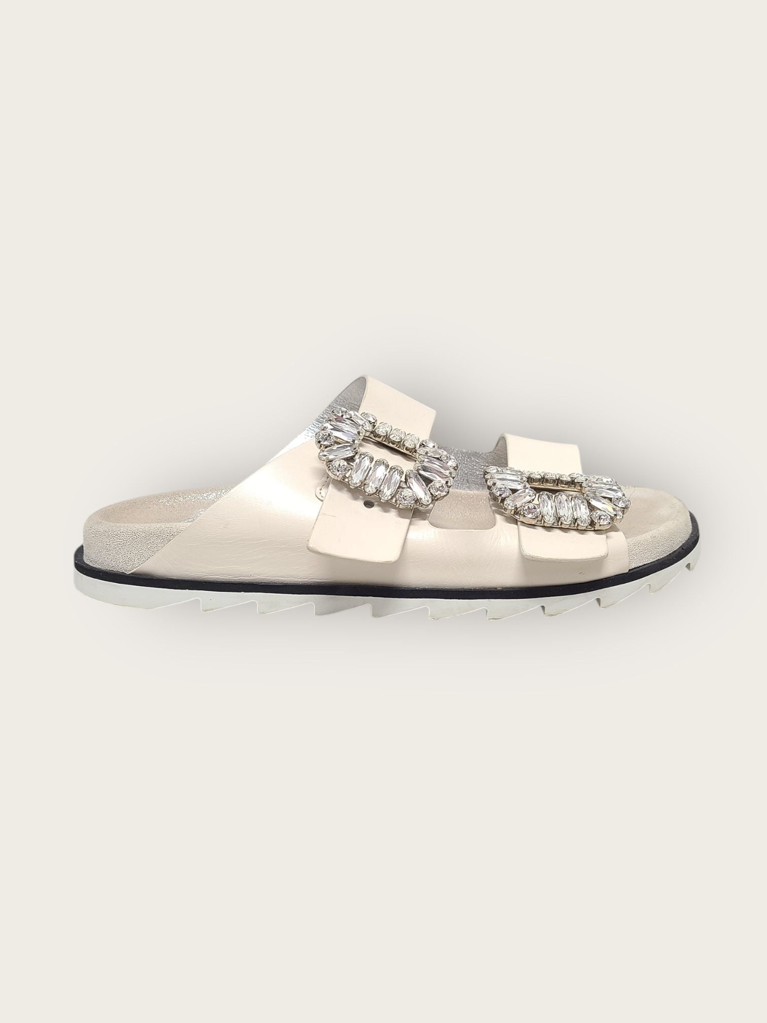 white slide viv' strass buckle slide sandals slippers 35 149322687