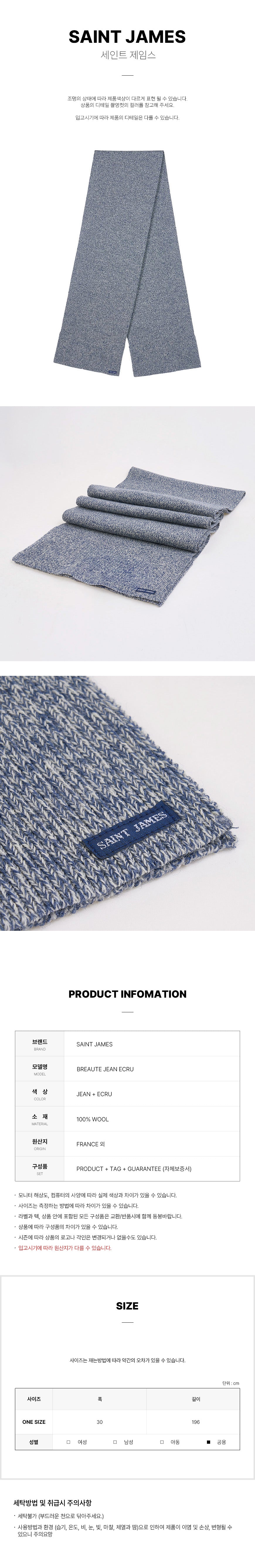 Product Name: Saint James BREAUTE JEAN ECRU FW25 Unisex Broute Scarf 150705559