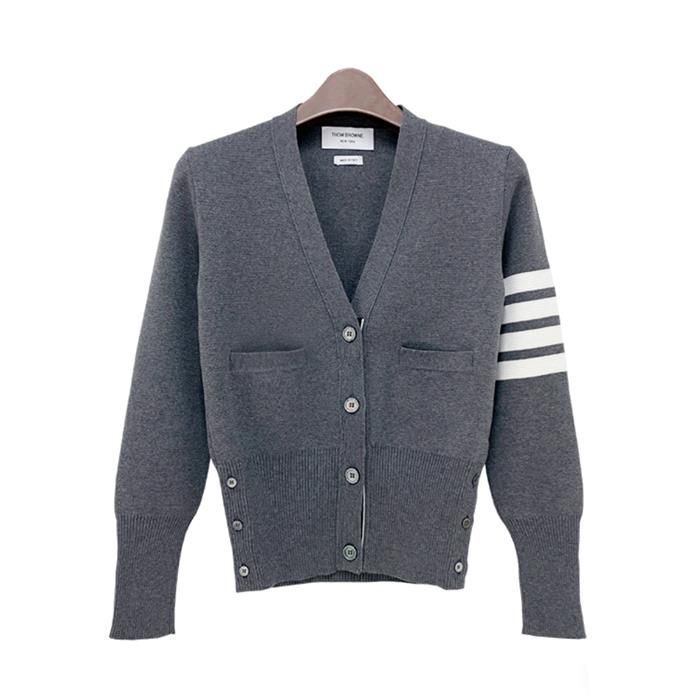 Product Name: Thom Browne 4-Bar Stripe V-Neck Cardigan Gray FKC207A 147569117