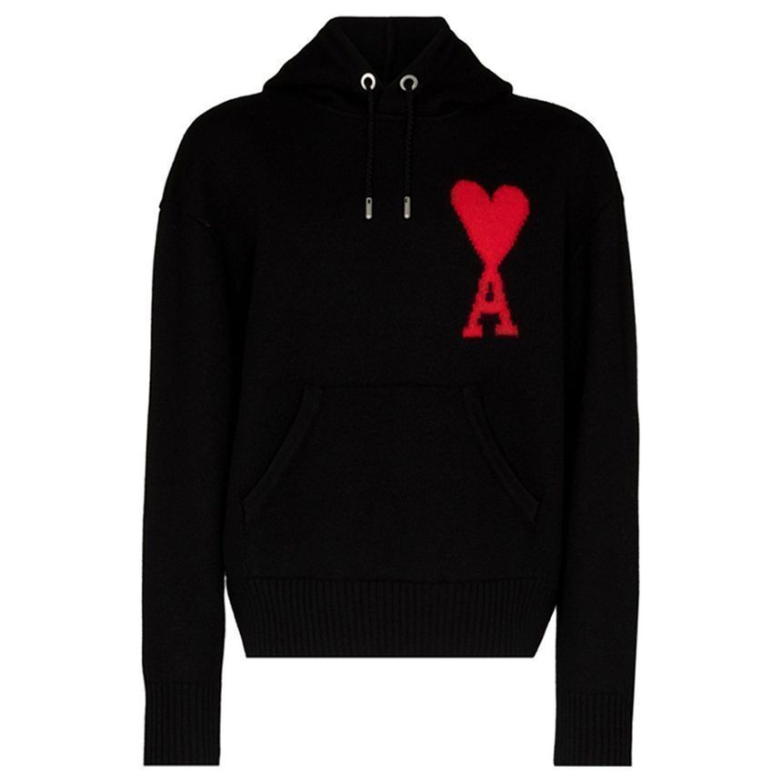 商品名:AMI ビッグハートロゴ刺繍オーバーサイズニットパーカー ブラック E22UKS802 018 009 129750693