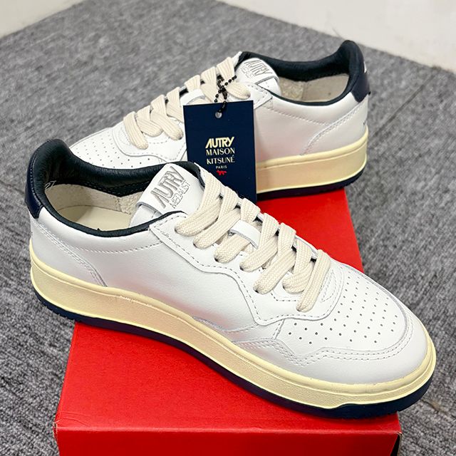 商品名: オートリ X メゾン キツネ レディース メダリスト レザー スニーカー ホワイト ネイビー (AULWMK01)