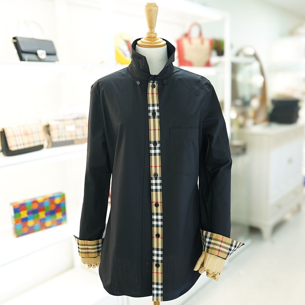 商品名: レディース ロングスリーブ シャツ ブラック コットン チェック スリムフィット 80678121