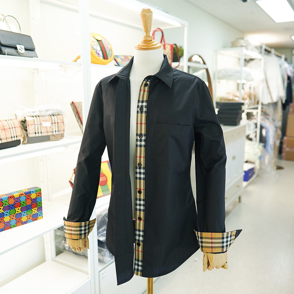 - バーバリーのボタン開閉部分と袖にバーバリーチェックポイント