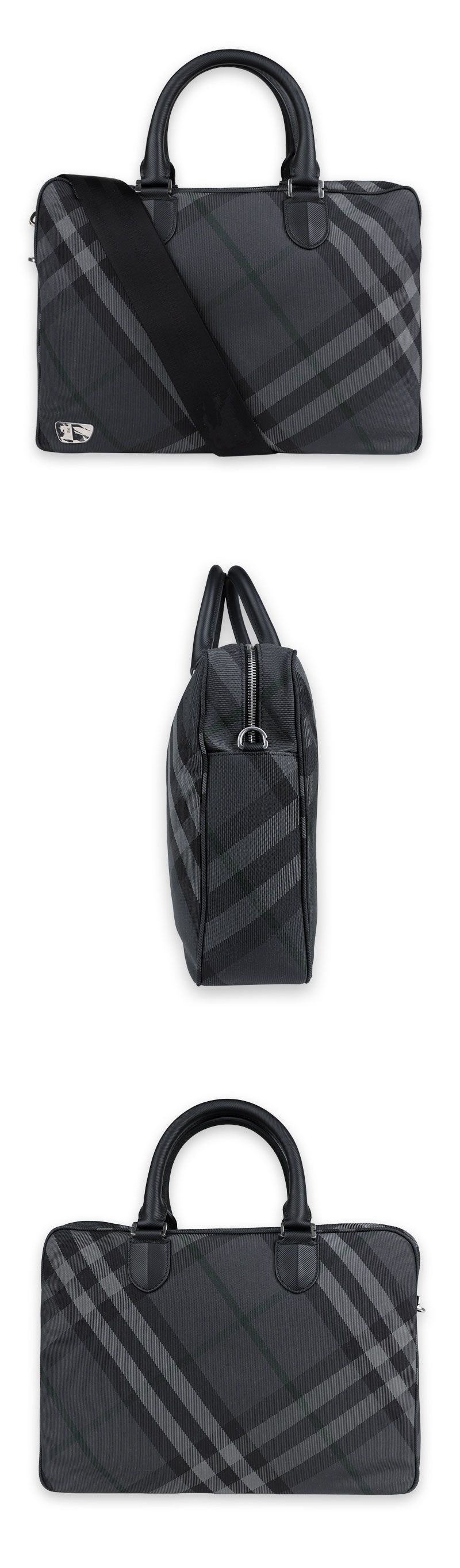 Product Name: Burberry Men's Dark Check Briefcase Tote Bag (Charcoal) 8097348 134034762