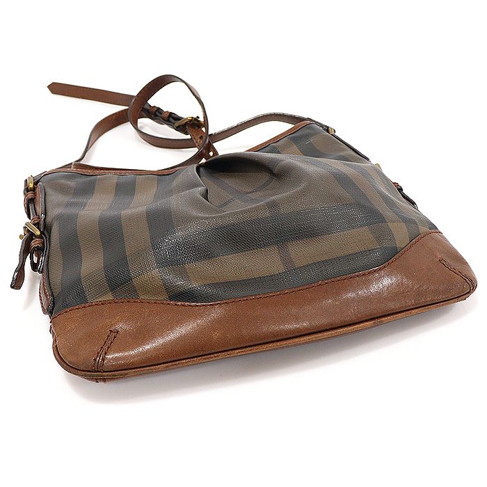スモークチェックキャンバスブラウンレザーハータムクロスバッグ 152544347