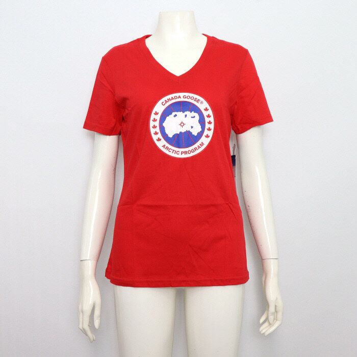 6114l レッド ロゴ vネック レディース 半袖 tシャツ 6114l 152318008