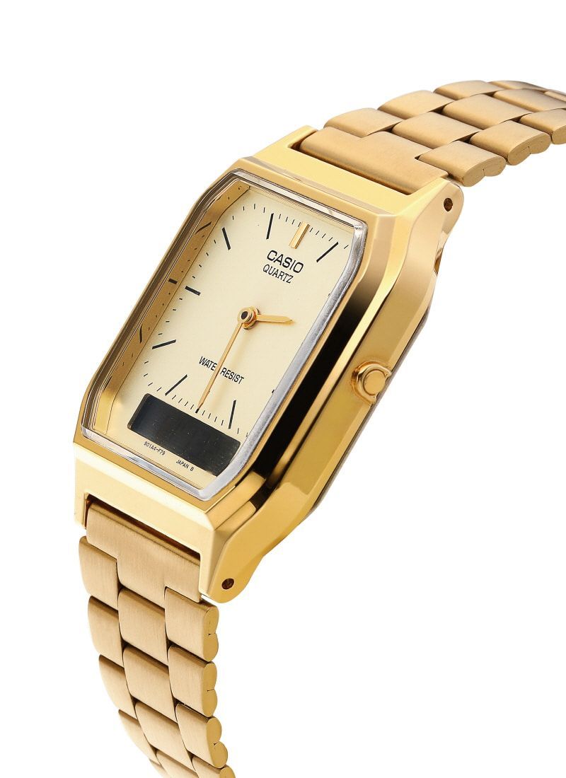 アナログデジタルスクエアビンテージレトロユニセックスメタルウォッチ aq-230ga-9dhdf 145431492