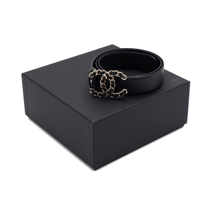 - シャネルのブラックレザー ゴールドチェーンCCロゴ レディースベルトです