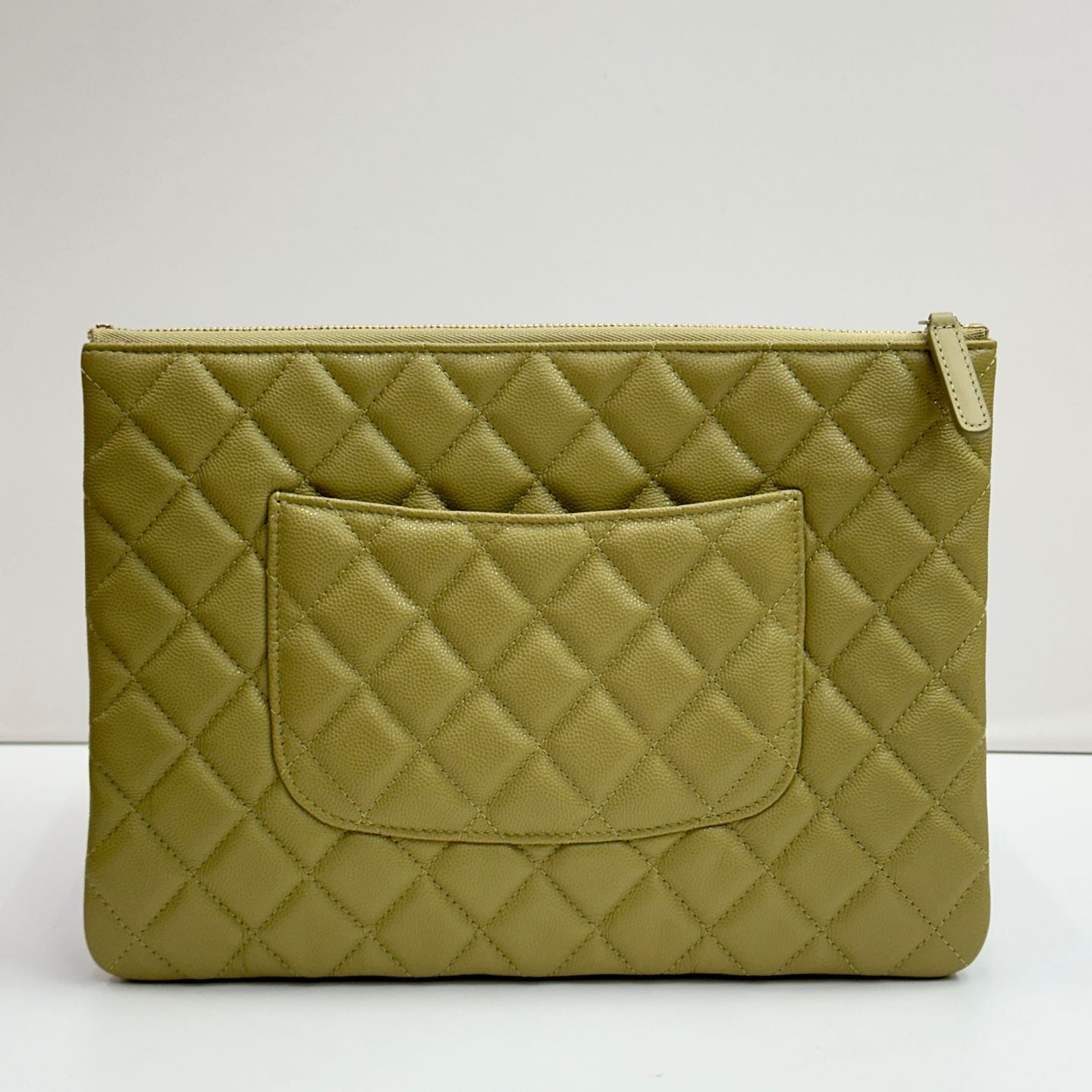 - 商品説明: 内蔵チップ商品。シャネルのクラシッククラッチです。オリーブ色にゴールドロゴがマッチしています。状態は良好です。