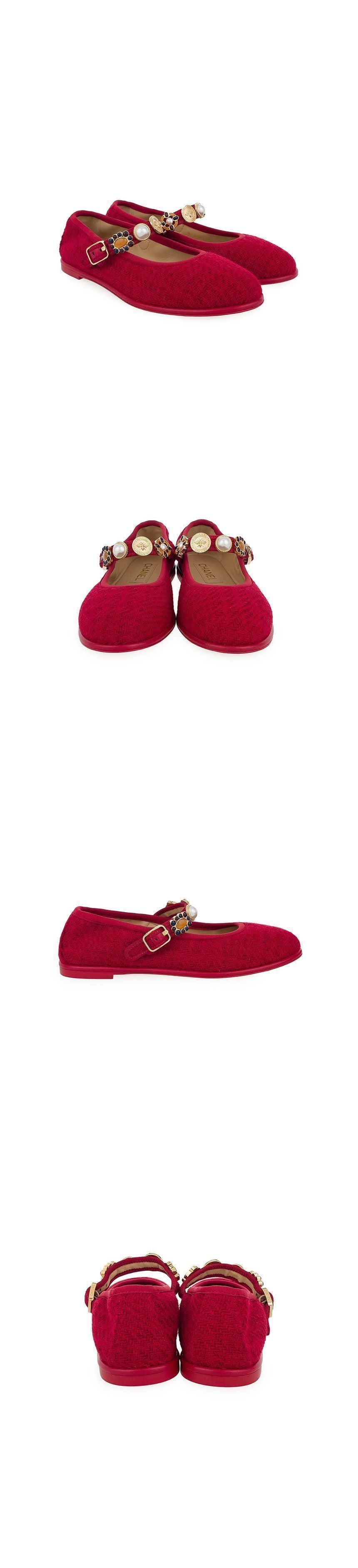 トゥイード メリージェイン フラットシューズ 37.5 レッド 金具 5et0613 131443600