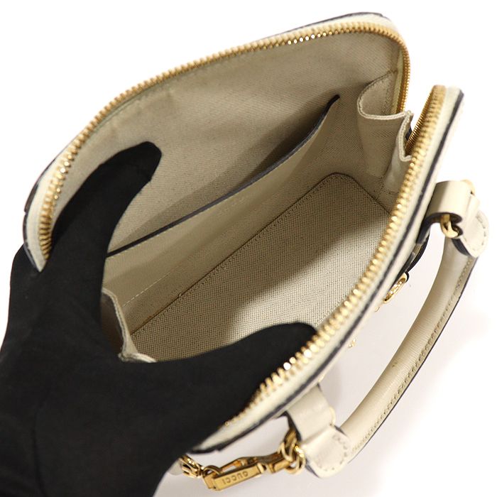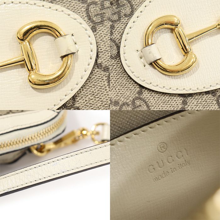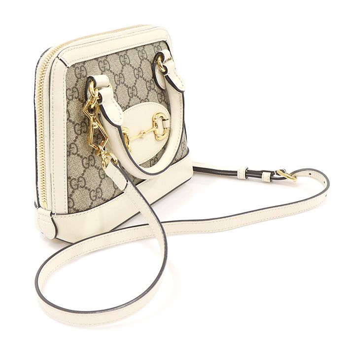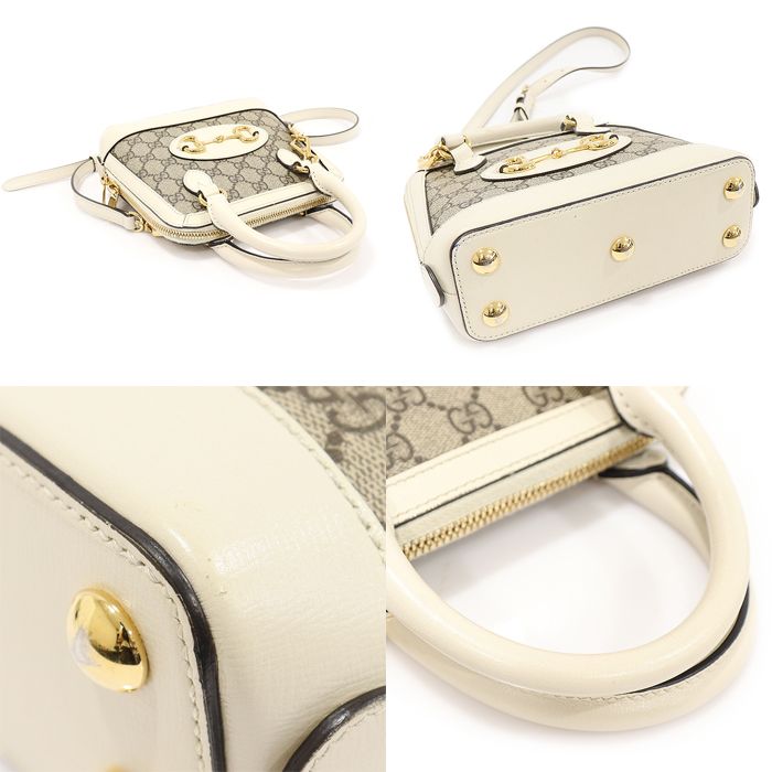 商品名: 640716 GGスプリームキャンバスホワイトレザーホースビット1955ミニトップハンドルバッグ2WAY