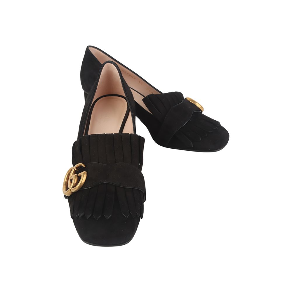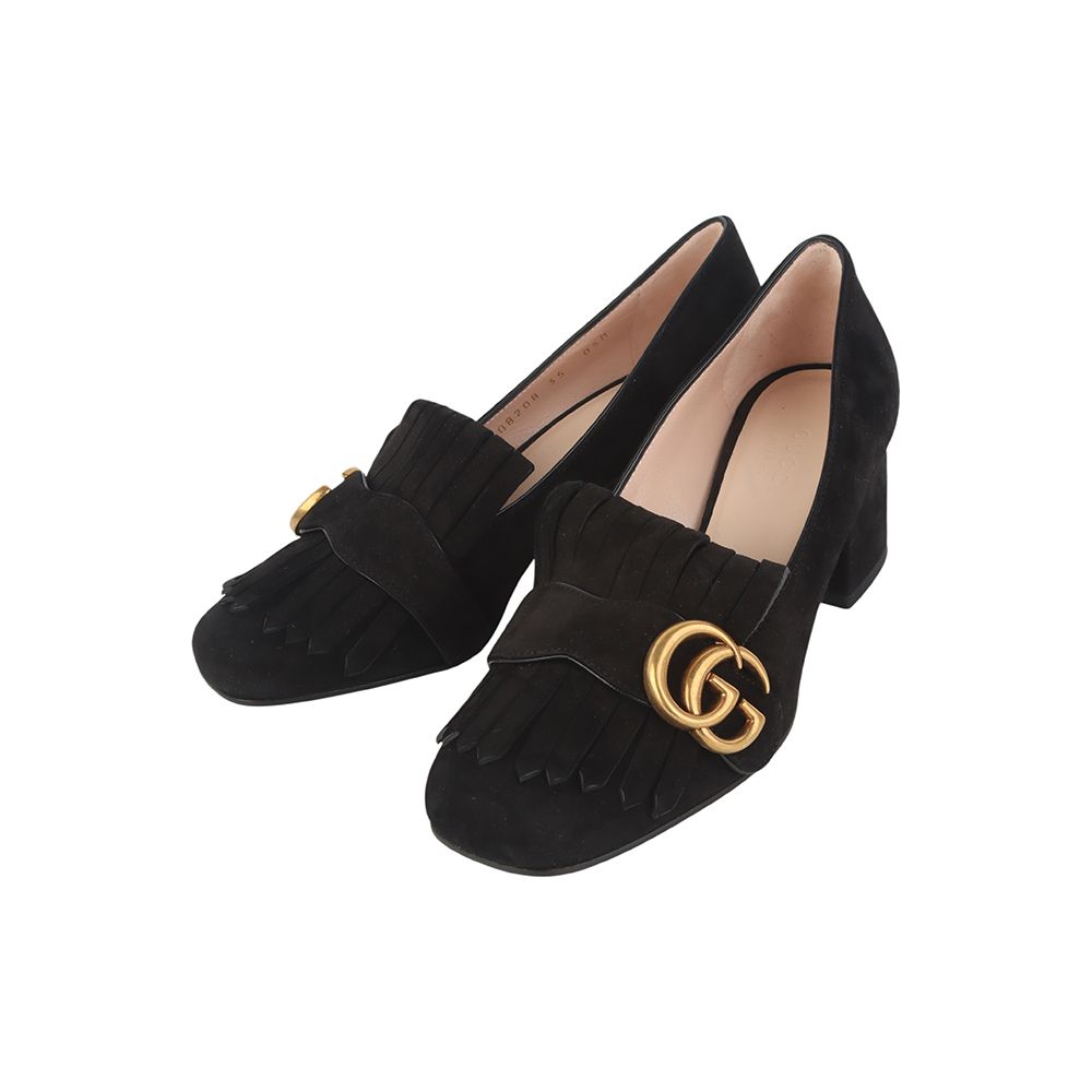 408208 gg ゴールド スウェード マモン ミドルヒール フリンジ パンプス シューズ 35 36645y 152200244