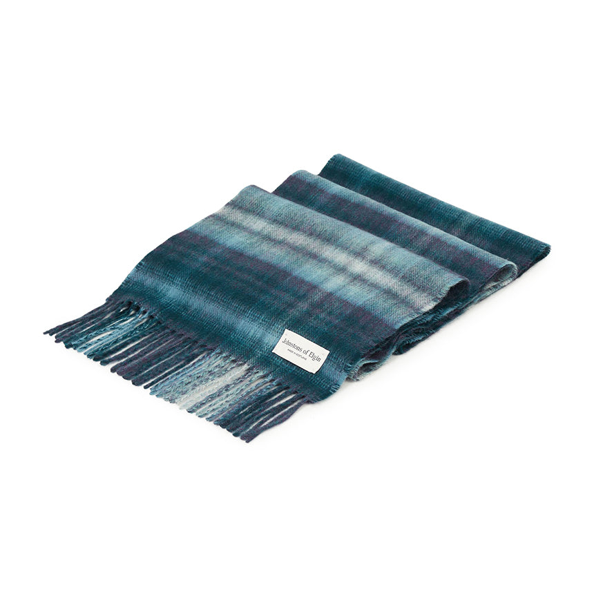 エルギンのジョンストンズ ソフト ブラッシュ チェック カシミヤ マフラー ru7632 blue (ユニセックス) 147309358