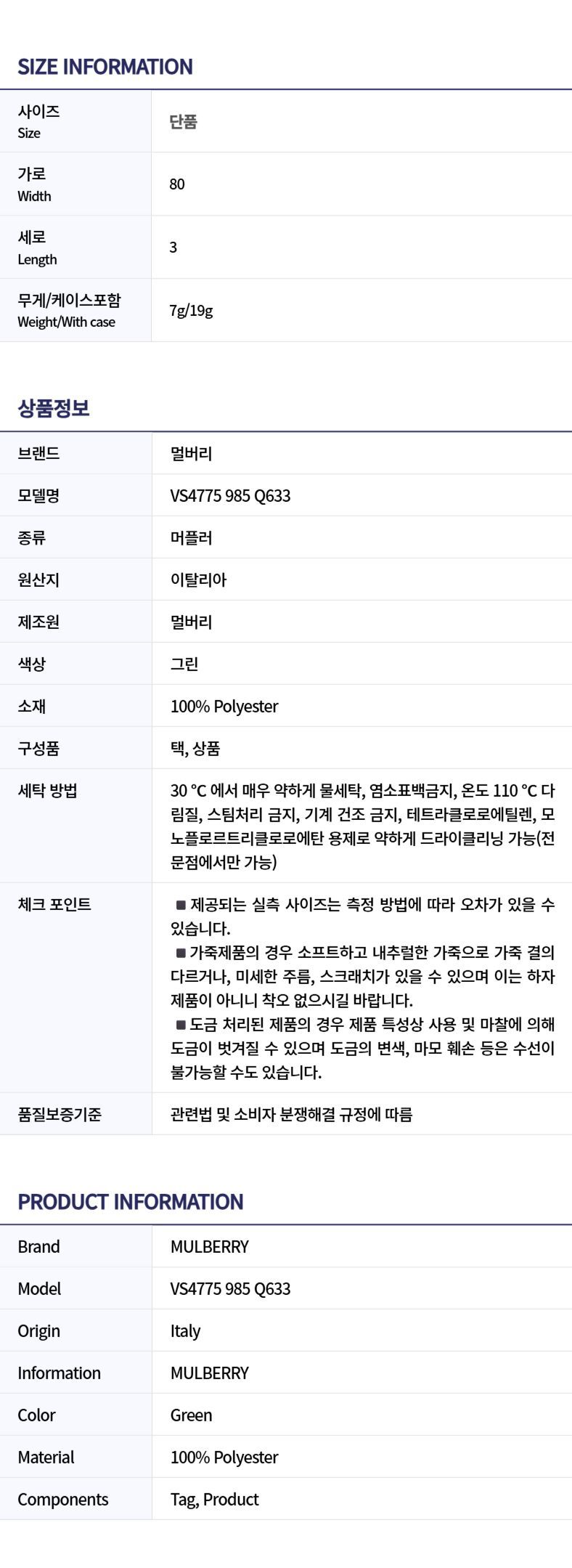 Product Name: Mulberry [Limited Edition/30 Pieces] 26SS Women's Skinny Scarf VS4775 985 Q633 148763818