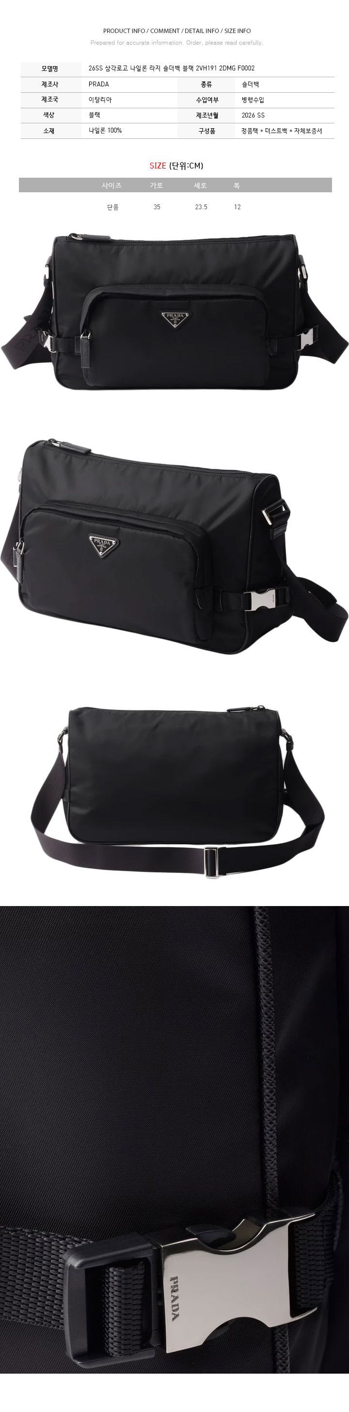 Product Name: Prada 26SS Triangle Logo Nylon Large Shoulder Bag Black 2VH191 2DMG F0002 150726809
