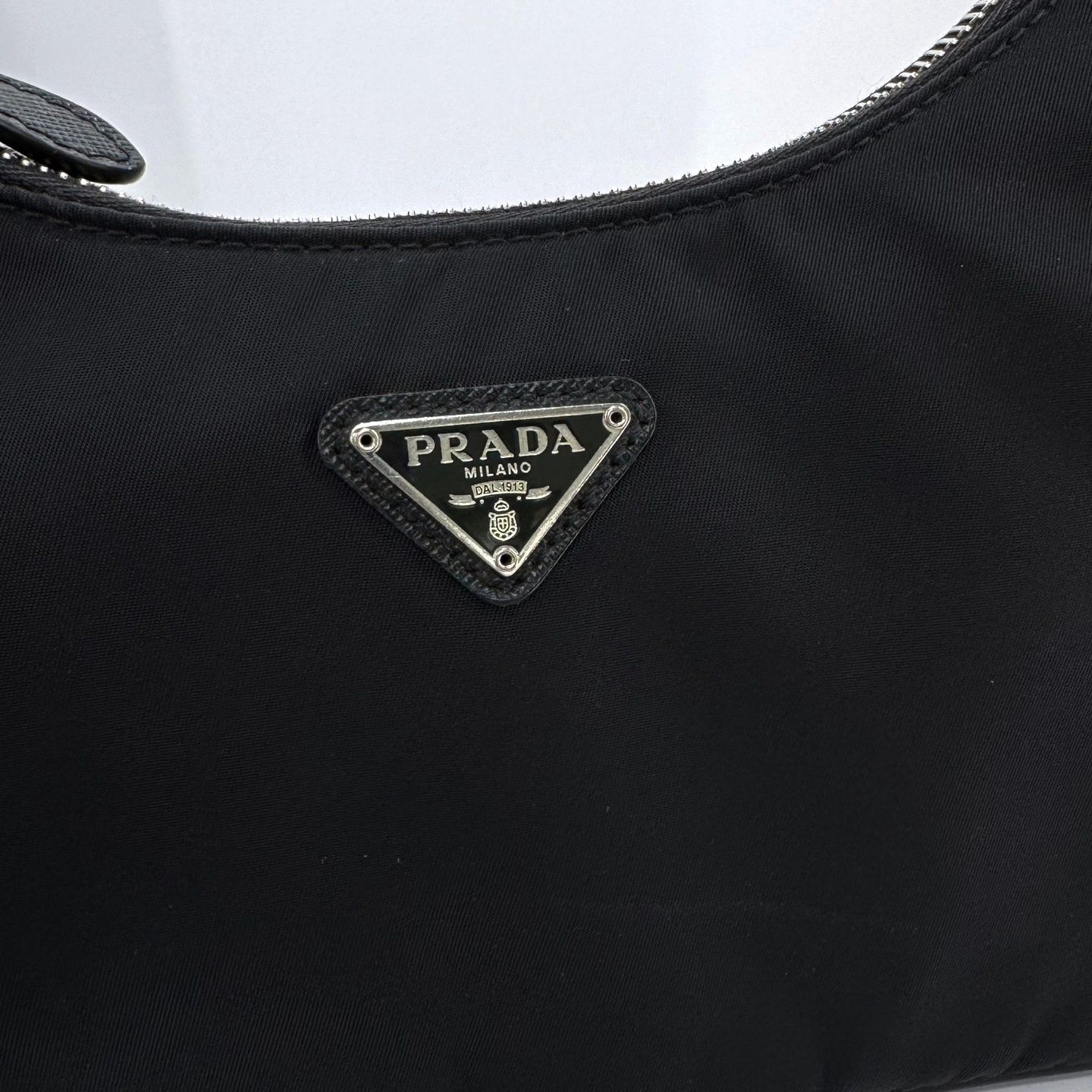 - 前面にプラダロゴの刻印がある三角形の金属装飾