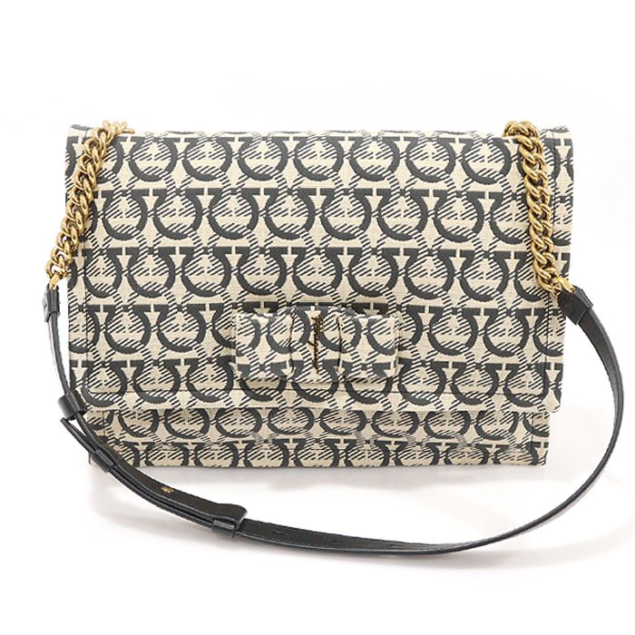 21 0363 ガンチーニ パターン ジャカード パディング バラ ボウ ヴィヴァ スモール チェーン ショルダーバッグ 0745570 145941069