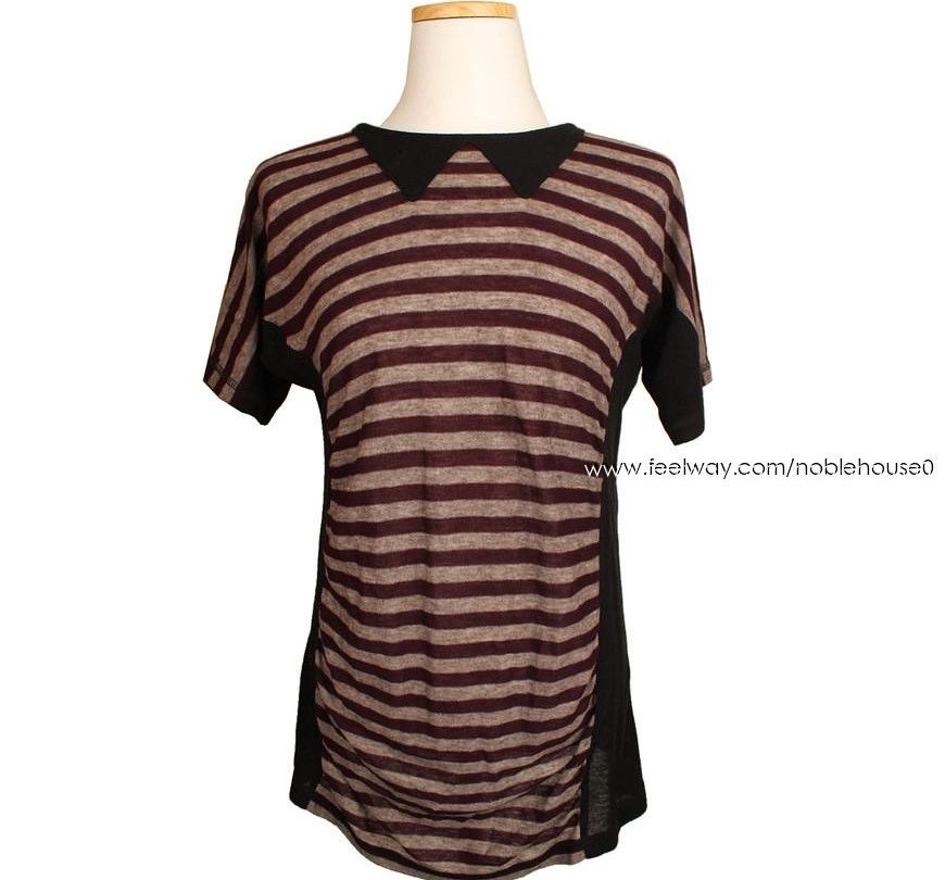 ソニアリケール ブラック&バーガンディ ストライプ tシャツ 55.5 26807391