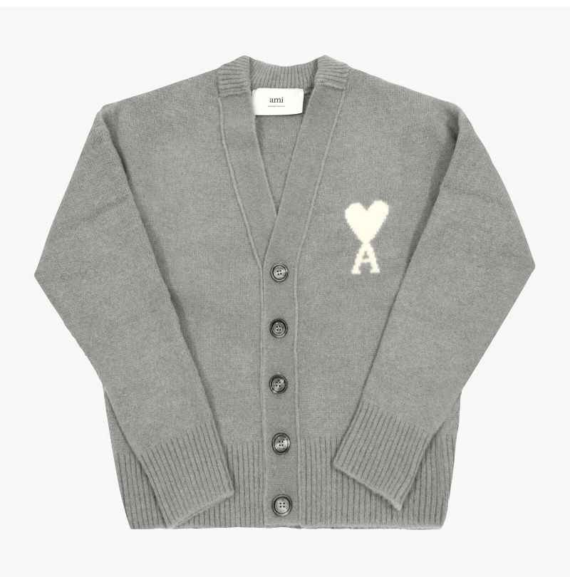 Product Name: AMI Big Heart Logo Intarsia V-Neck Cardigan 148808753