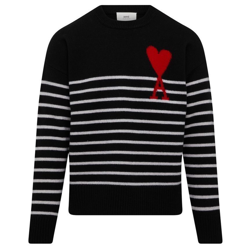 Product Name: AMI Big Heart Stripe Knit Black and White H21K029 018 004 150392846