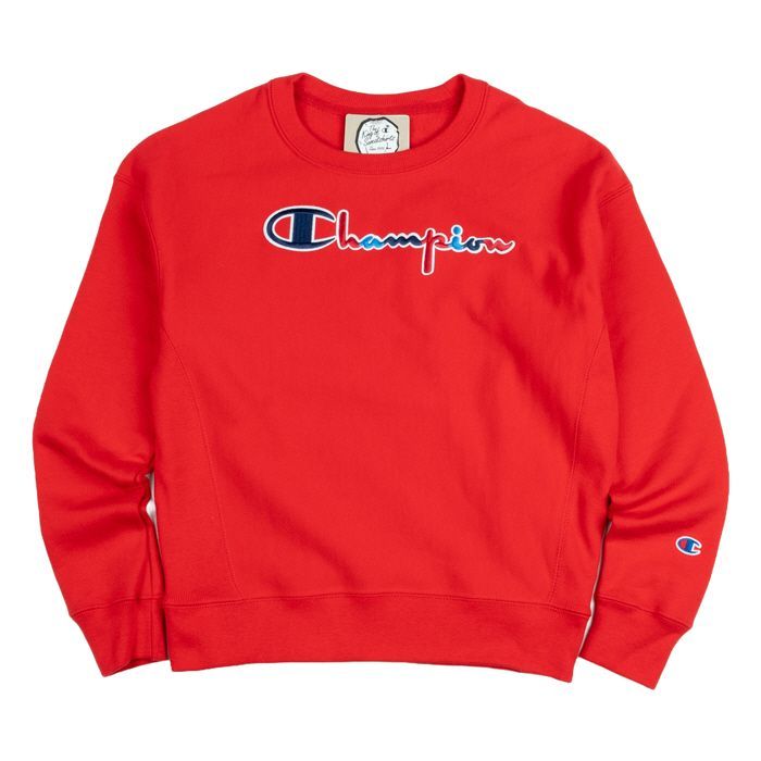 Product Name: Champion Reverse Weave 3-Color Script Logo Women's Crew Neck Scarlet 118695518
