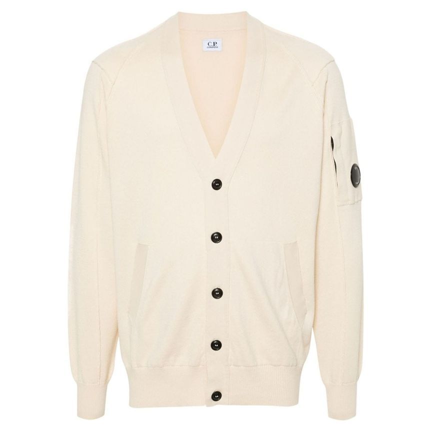 商品名:CPカンパニー レンズパッチ Vネック ポケット カーディガン アイボリー 16CMKN054A 004037A 402 122482692