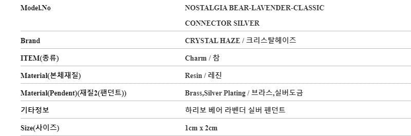 SKU: NOSTALGIA BEAR-LAVENDER-CLASSIC CONNECTOR SILVER