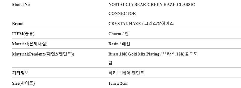 Product Name: CRYSTAL HAZE Nostalgia Bear - Green Haze - Classic Connector - Gold Pendant Charm 146712506