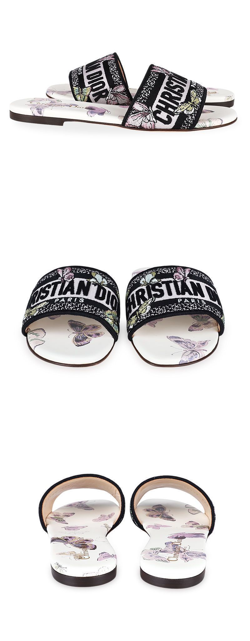 Product Name: Dior Women's Embroidered Cotton and Butterfly Mule Slippers (White/Purple) 83W 151665500