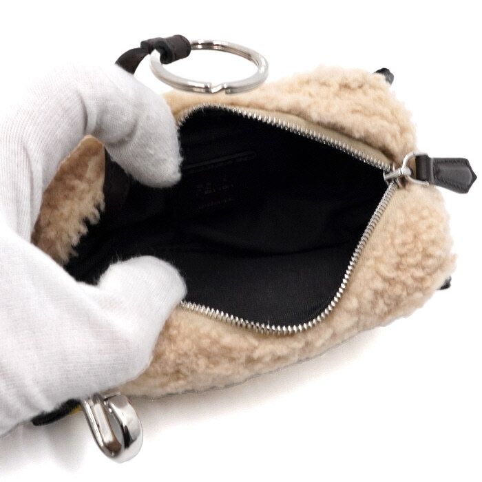 商品名: レザー ファー ベージュ キーリング兼バッグチャーム 7AS332