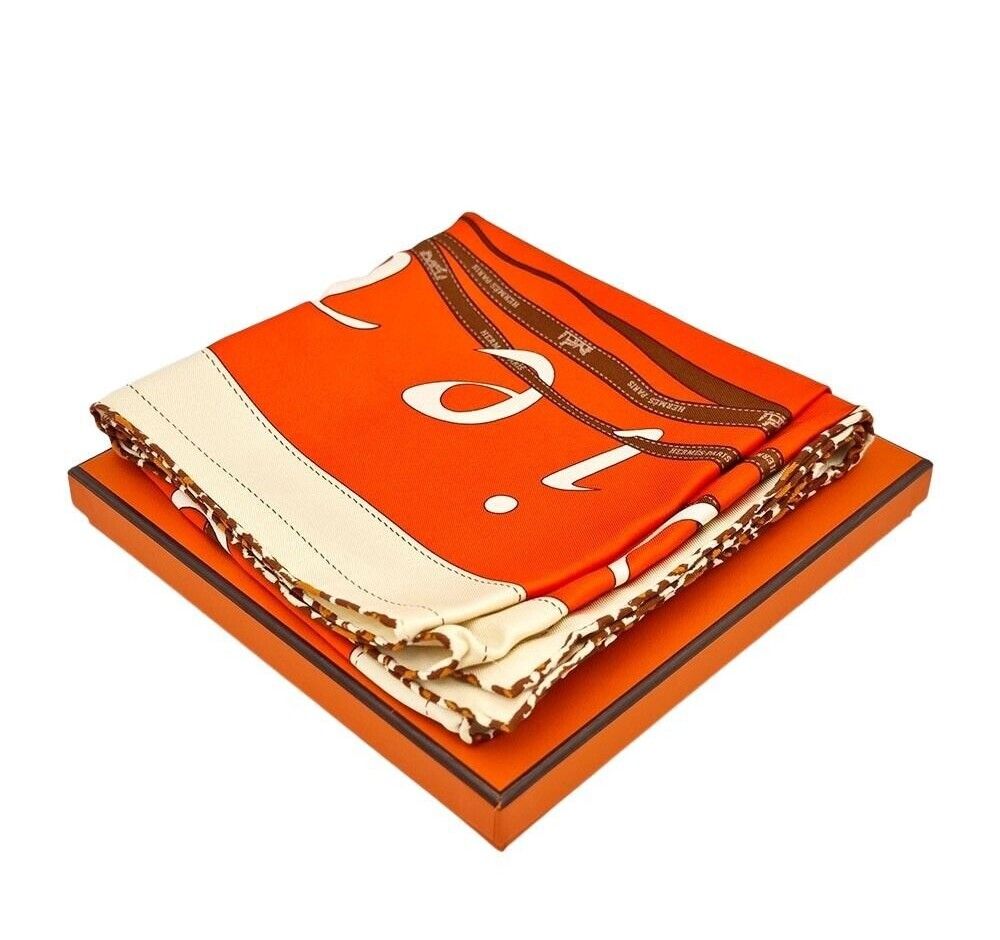 - 洗練されたオレンジカラーと製品プリントが際立つスカーフです。