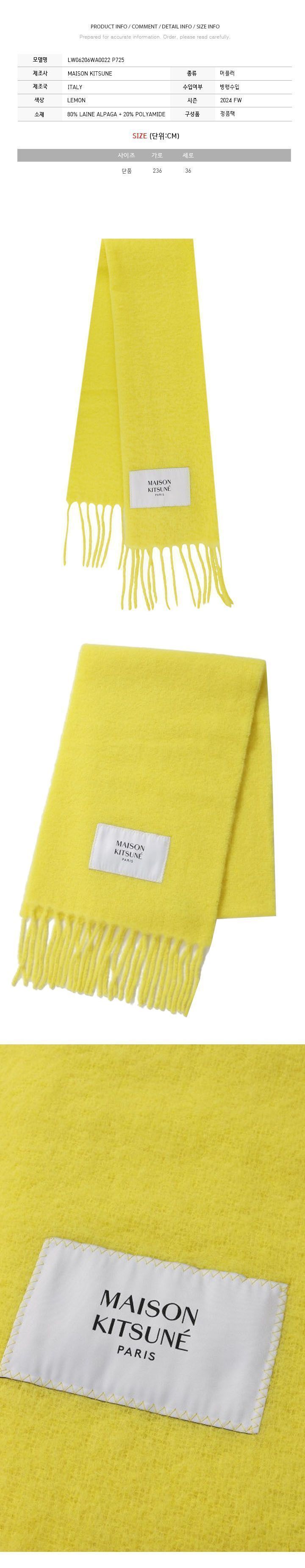 商品名:メゾンキツネ アルパカ フリンジ スカーフ レモン LW06206WA0022 P725 110883643
