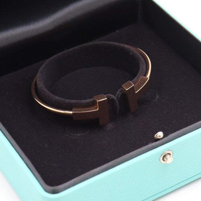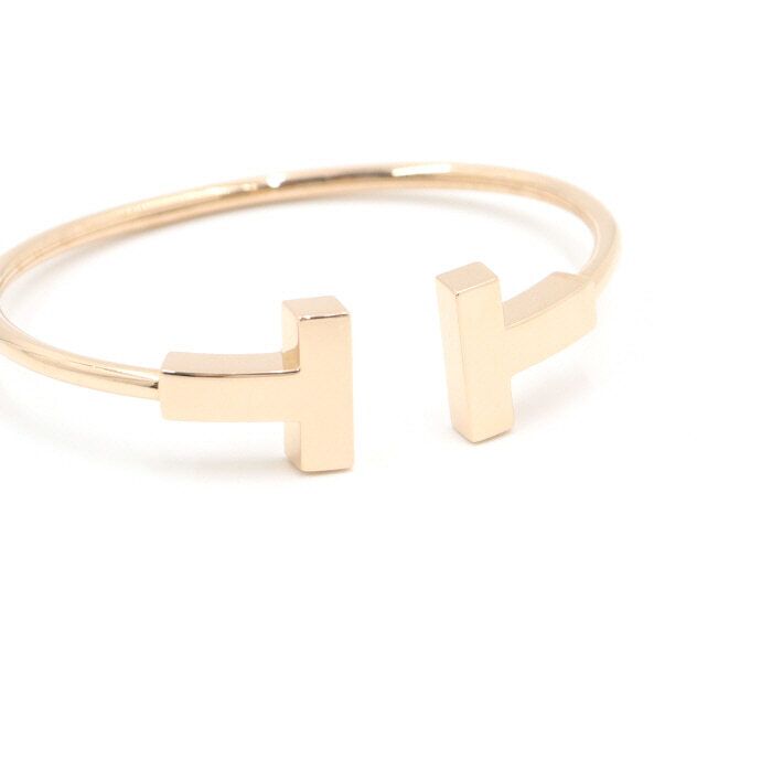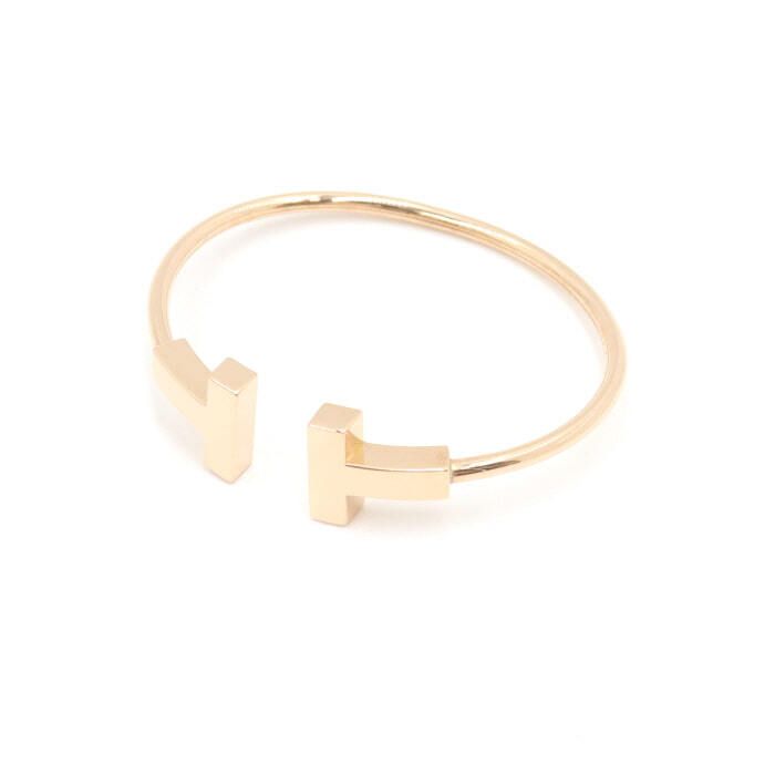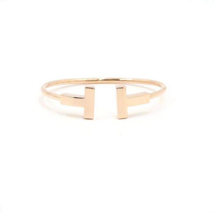 - 18Kゴールドモチーフ、ワイドティファニーピンクゴールドTワイドワイヤーブレスレット女性用ブレスレットです。