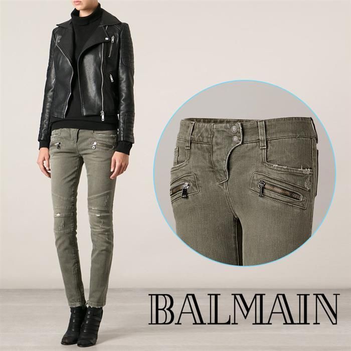 Product Name: Balmain Women's Green Washed Biker Pants 5355 170N C3901 141451870