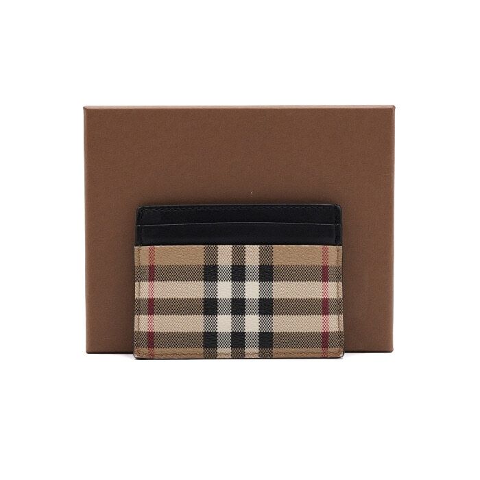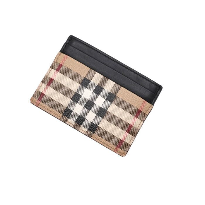 - アーカイブベージュチェックとレザーの男性用カードケースです