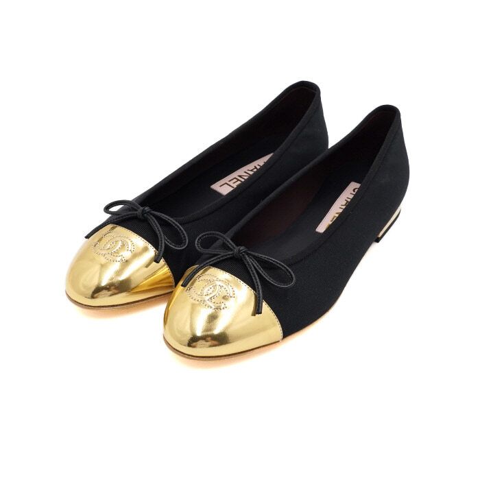 ブラック ゴールドccロゴツートン バレリーナ レディース フラットシューズ g38678 152317092