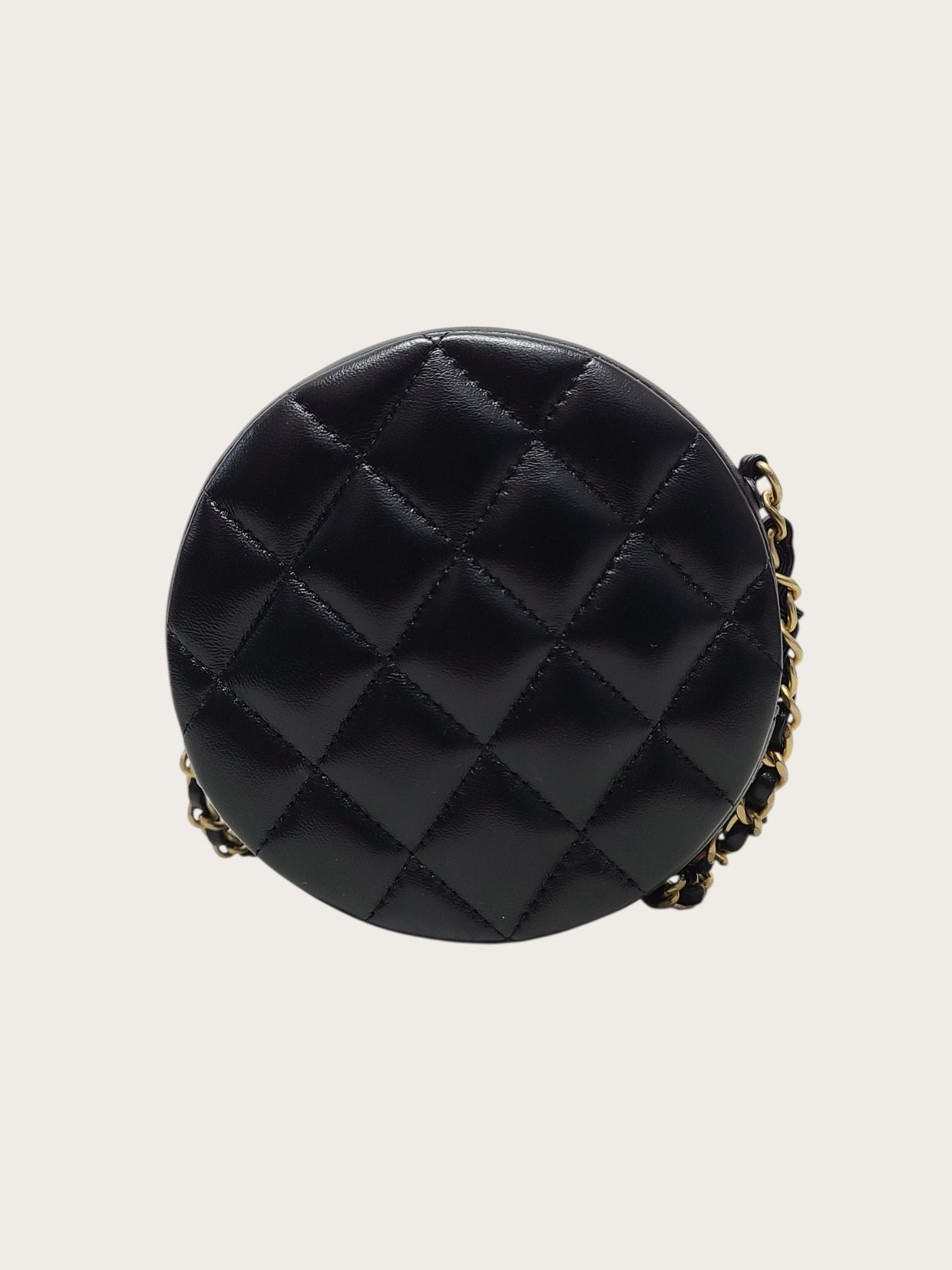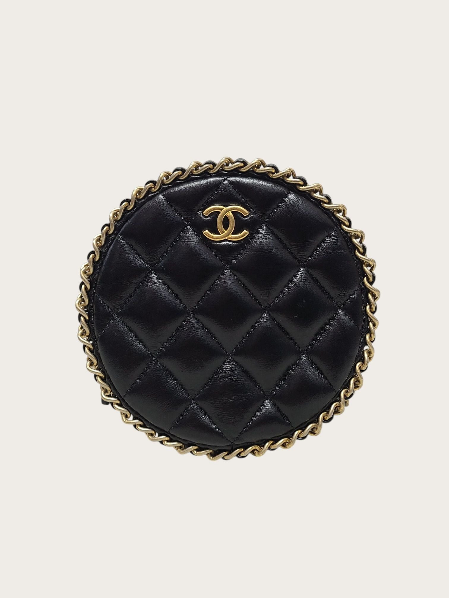 ブラックラムスキンゴールドチェーンラウンドクロスバッグ 153096993