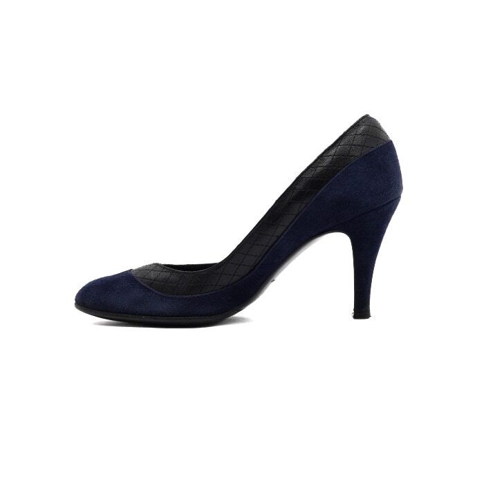 ネイビースウェードキルティングブラックレザーウィメンズパンプス aa60922 152560903