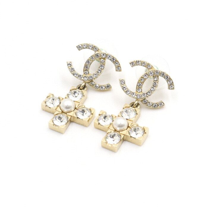 21シーズン ゴールドccクリスタルパールドロップイヤリング aa45961 152895943
